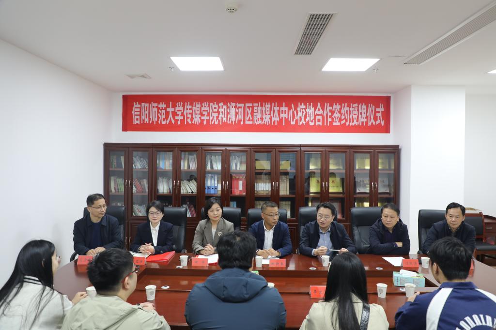 随后,双方负责人签署了合作共建协议,姚新春为区融媒体中心校地合作授牌。