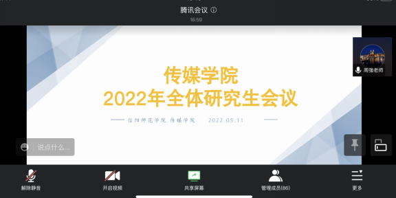 5月11日晚,为做好kaiyun官网研究生疫情防控管理及教育教学工作,kaiyun官方网站登录入口组织召开了2022年全体研究生线上会议。kaiyun官方网站登录入口副院长周强、各研究生班主任及全体研究生参加会议。本次会议由副院长周强主持。