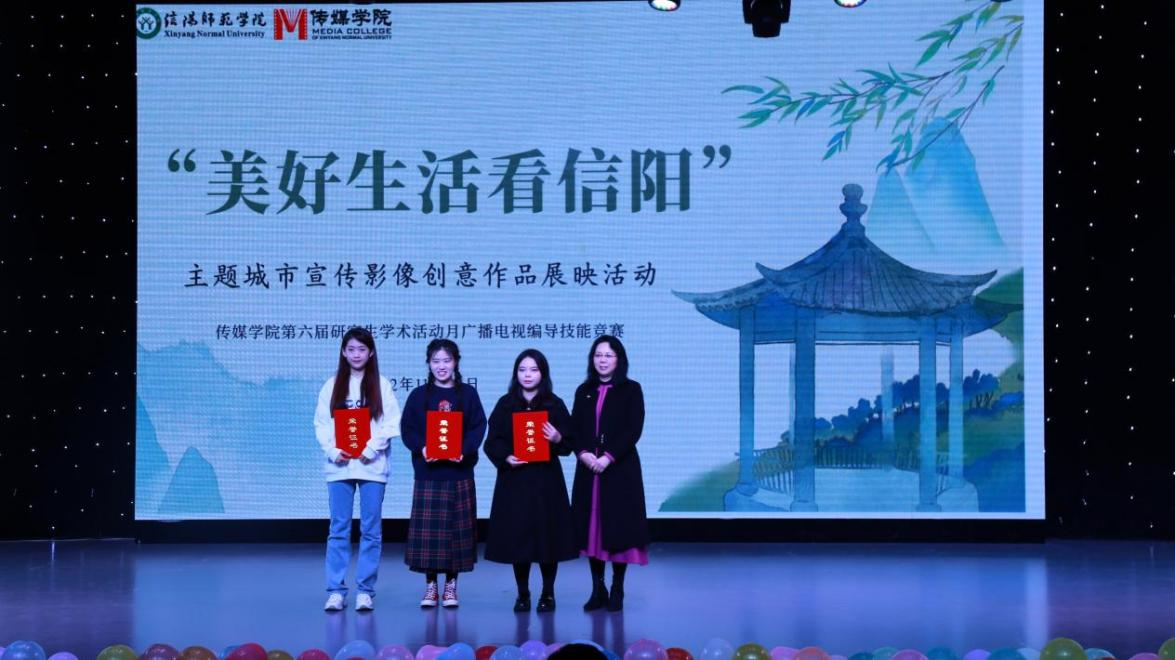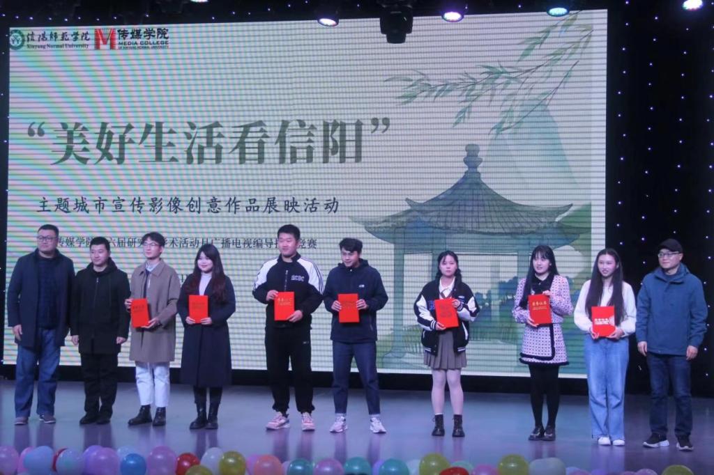 本次评选出的一等奖作品分别是《我的红城绿海》《邀你看一场师院的秋》《五味信阳》;荣获二等奖的作品有《听闻远方有信阳》《信阳好》等5部作品;获得三等奖作品分别是《美丽乡村入画来》《万水千山周游,不如品茗会友》等7部作品。本次获奖作品均为kaiyun官网研究生团队的原创影像作品,每部作品都呈现了精美舒展、自然可观、烟火气十足的信阳故事和浓厚的信阳情怀,展现出信阳城市的独特魅力,也充分体现出kaiyun官网研究生的卓越的专业创新能力及团队合作能力。作品展映和创意阐释结束后,到场的各位领导老师为获奖同学们颁发荣誉证书并合影留念。