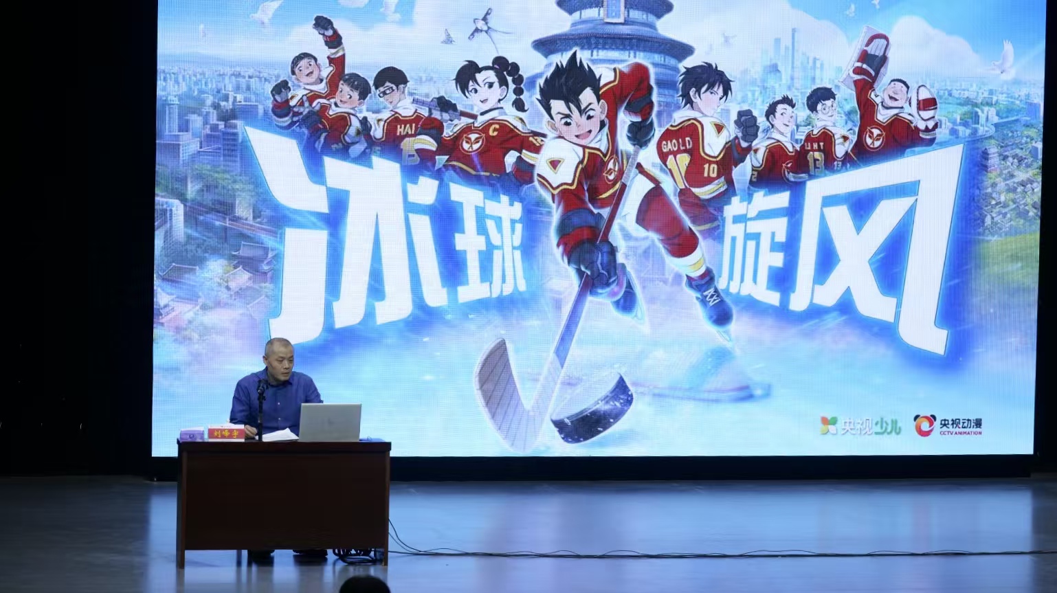 在项目起源部分,刘峰宇主任阐述了《冰球旋风》诞生的时代背景——旨在推动冰雪运动的发展。他指出,冰球作为一项观赏性强的集体运动,其蕴含的团结协作精神与动画创作的初衷不谋而合。在前期准备方面,刘峰宇强调了资料搜集与调研学习的重要性。创作团队通过专家研讨、实地采风及采访小球员等多种方式,力求动画内容的真实性和专业性。特别是在冰球规则、服装道具设计等方面,团队克服了诸多难点,兼顾了运动特性与动画艺术的需求。例如,在头盔设计上,团队选择了西方的半面头盔,以保留运动员脸部的微妙细节,提升动画的美观性。在创作实践方面,动画以北京冰球协会为真实背景,精心打造了超过1000个角色、700个道具及400个场景,展现了丰富的视觉层次。创作方法上,团队采用了模块式创作法和分镜创作,确保了动画制作的高效与精准。在师生交流环节,刘峰宇主任及团队成员耐心解答了师生们提出的问题。