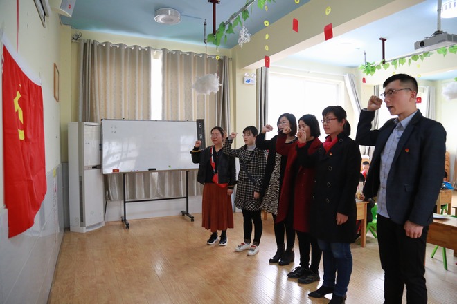 3月19日14:30,信阳师范学院kaiyun官方网站登录入口教工第二党支部党员在支部书记张霞同志的带领下步行前往信阳学院幼儿园。在小朋友们热切的期盼和掌声中,张霞同志开始了本次主题党日活动的第一项内容——向小朋友们传递党的宗旨和党的先进性,张霞同志满含深情的讲解也让端坐的小朋友全神贯注、目不转睛,党的理念、党的思想由此也在他们幼小的心灵悄悄扎根。第二项活动内容是教工第二党支部的全体党员面向党旗,重温入党誓词,现场的所有党员都凝神聚力,将这有声的誓言和无声的波澜都化作日后坚定信仰、奋勇争先的指南,幼儿园的小朋友们也在这庄严的时刻感受到了崇高与使命。第三项内容是教工第二党支部的党员向小朋友们分发图文并茂、内容新颖的图书绘本。幼儿是国家的希望、民族的未来,每本图书均用党费购买,既充盈着党的温度,也饱蘸着二支部党员关心下一代的深情。孩子们翻开书页,脸上天真的笑容和美好的憧憬让每一位党员教师驻足,“书好不好看、字认不认识、有什么愿望”都是老师们关注的焦点。最后,在雷动的掌声和幼儿园小朋友们的欢送声中,教工第二党支部的党员们与他们依依惜别。