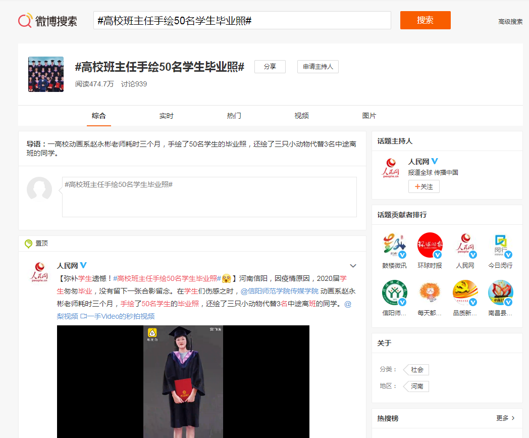近日,#高校班主任手绘50名学生毕业照#话题登上微博热搜,被人民网、环球时报等转发,参与人数近500万。kaiyun官方网站登录入口2016级动画班班主任赵永彬老师自6月8日起,历时三个月,为班级50毕业生手绘毕业照,弥补这个特殊毕业季的遗憾。