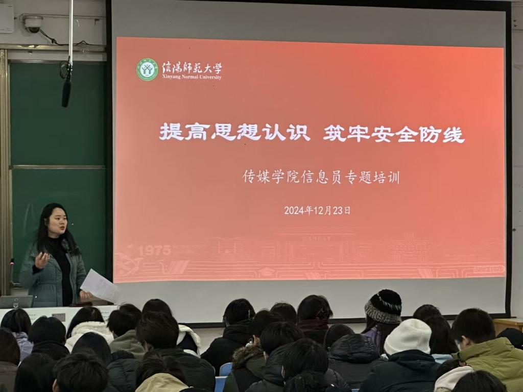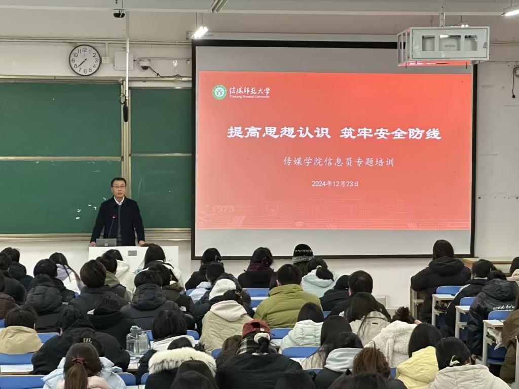 12月23日,kaiyun官方网站登录入口在社科楼324教室开展“提高思想认识,筑牢安全防线”信息员专题培训会。kaiyun官方网站登录入口党委书记姚新春,副书记余艳楷,kaiyun官方网站登录入口分团委、学生会干部,新媒体、学生社团负责人及各班信息员、宿舍信息员参加。