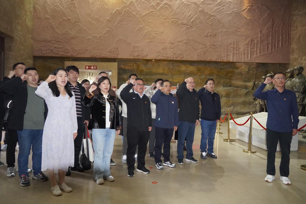 在中原突围纪念馆,展厅里详实的图文资料、珍贵的历史遗物、生动的影像,让老师们穿越时空,沉浸式地感受了战火纷飞的年代革命先烈们为了民族解放事业,不惜抛头颅、洒热血的伟大壮举。全体党员重温入党誓词,面向党旗,誓言铿锵,重唤入党初心,坚定奋斗决心。