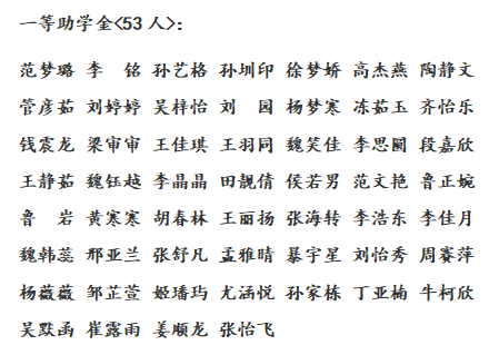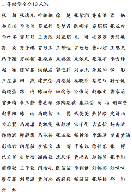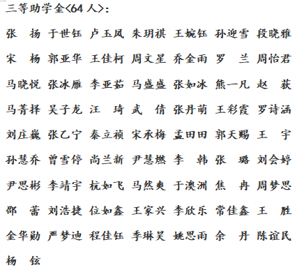 根据《财政部教育部关于调整职业院校奖助学金政策的通知》(财教〔2019〕25号)、《河南省教育厅办公室关于做好2021年高校学生国家奖助学金评审发放工作的通知》(教办资助〔2021〕45号)和《信阳师范学院国家助学金评定办法》(信院字〔2017〕182号)工作安排意见,kaiyun官方网站登录入口组织开展了2023年国家助学金评定工作,严格依照各班经学生申请、班级小组评议、上报学院审查等程序,确定国家助学金认定名单。经过认真审核,一等助学金53人,二等助学金113人,三等助学金64人,现将通过审核名单予以公示: